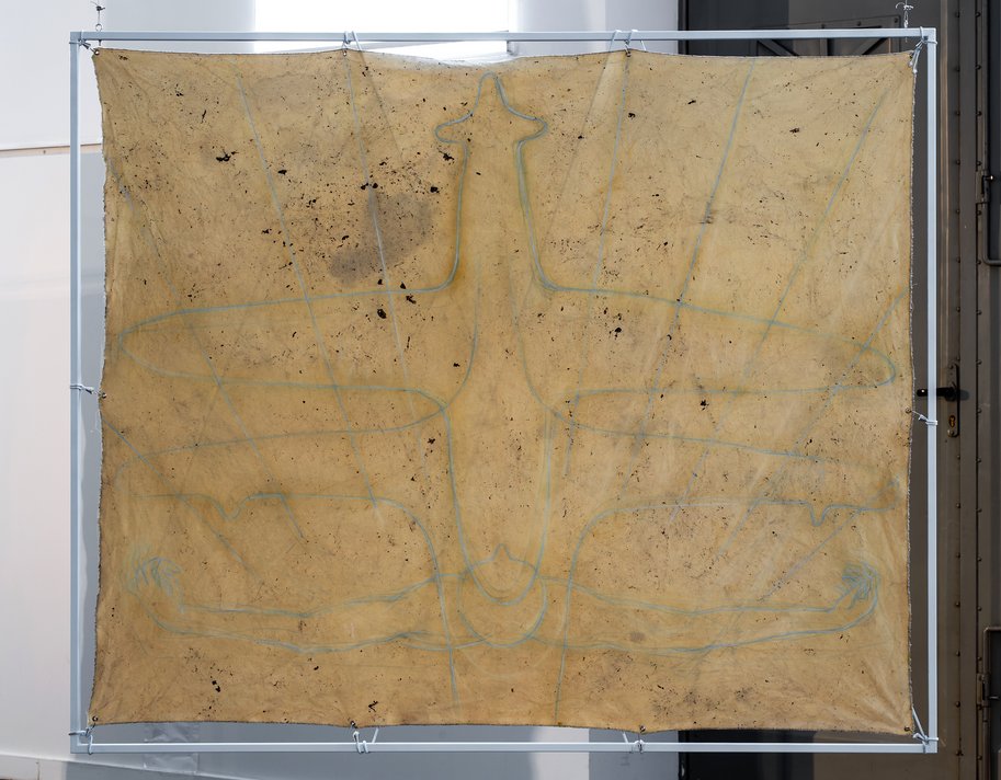 The textiles dyed by using a traditional Georgian technique convey drawn narratives. These relate to various forms of alienation from physical and mental connection to a landscape.